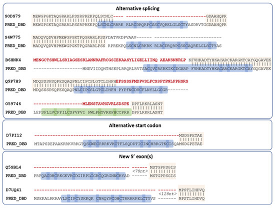 For all eight remaining proteins, a potential DBD sequence was found either within the existing annotated gene via alternative splicing, or the proximal 5′ region (<1000 nt) via an alternative start codon or in a new exon (Figure 4).