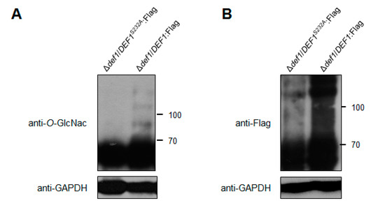 3.8. O-GlcNAc Modification Affects the Def1 Stability and Is Required for the Def1 Functions