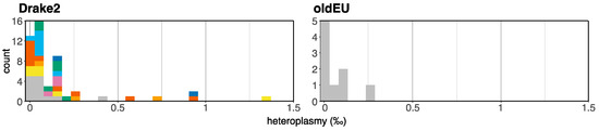 We calculated the using each potential minor mitotype (each mitotype present at Drake2). Because the true detectable heteroplasmy should produce a higher than those from sequencing errors, we estimated the heteroplasmy () of a sample with the following: