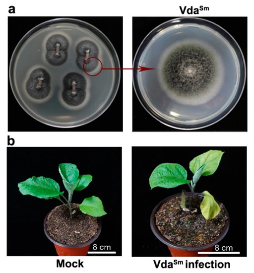 - Su, X.; Lu, G.; Rehman, L.; Li, X.; Sun, L.; Guo, H.; Cheng, H. mCherry-Labeled Verticillium dahliae Could Be Utilized to Investigate Its Pathogenicity Process in Nicotiana benthamiana. Genes 2018, 9, 508. [Google Scholar] [CrossRef]
