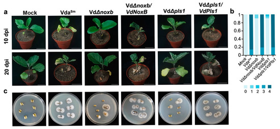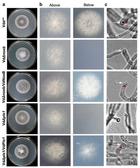 3.3. VdNoxB and VdPls1 Are Required for Penetration Peg Formation and Fungal Pathogenicity