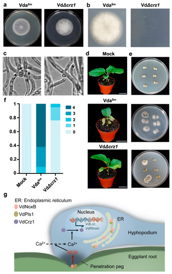 - Zhao, Y.L.; Zhou, T.T.; Guo, H.S. Hyphopodium-Specific VdNoxB/VdPls1-Dependent ROS-Ca2+ Signaling Is Required for Plant Infection by Verticillium dahliae. PLoS Pathog. 2016, 12, e1005793. [Google Scholar] [CrossRef] [PubMed]