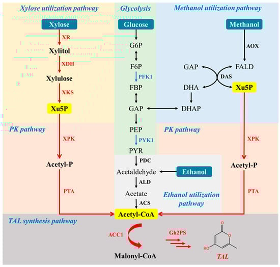 Feng L, Xu J, Ye C, Gao J, Huang L, Xu Z, Lian J. Metabolic Engineering of Pichia pastoris for the Production of Triacetic Acid Lactone. Journal of Fungi. 2023; 9(4):494. https://doi.org/10.3390/jof9040494