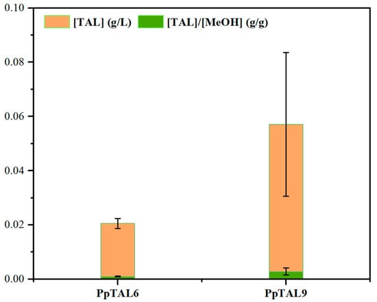 3.1. Production of TAL in P. pastoris via the Introduction of 2-Pyrone Synthase
