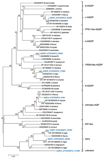 3.1. The Genome of A. niger Harbors at Least Seven Putative aqp Genes