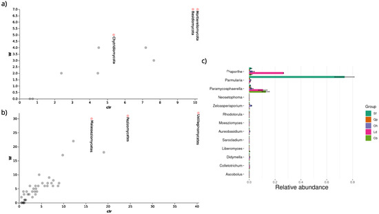 74. Yang, J.H.; Oh, S.Y.; Kim, W.; Hur, J.S. Endolichenic fungal community analysis by pure culture isolation and metabarcoding: A case study of Parmotrema tinctorum. Mycobiology 2022, 50, 55–65. [Google Scholar] [CrossRef]