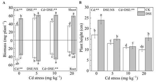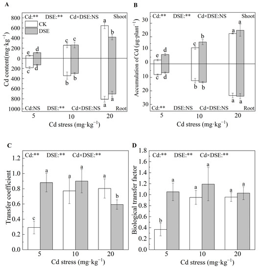 | Cd × DSE | ** | * | NS | ** | ** | ** | ||||||