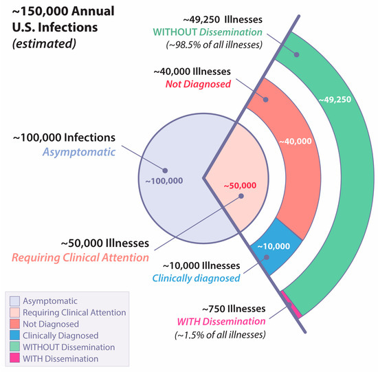 5.2. Clinically Significant Disseminated Disease Occurs as a Progression of the Initial Infection