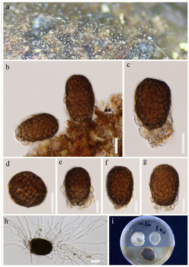 - Phookamsak, R.; Hyde, K.D.; Jeewon, R.; Bhat, D.J.; Jones, E.B.G.; Maharachchikumbura, S.S.N.; Raspé, O.; Karunarathna, S.C.; Wanasinghe, D.N.; Hongsanan, S.; et al. Fungal Diversity Notes 929–1035: Taxonomic and Phylogenetic Contributions on Genera and Species of Fungi. Fungal Divers. 2019, 95, 1–273. [Google Scholar] [CrossRef]