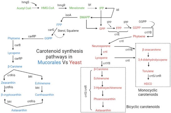 - Sandmann, G. Carotenoids and Their Biosynthesis in Fungi. Molecules 2022, 27, 1431. [Google Scholar] [CrossRef]