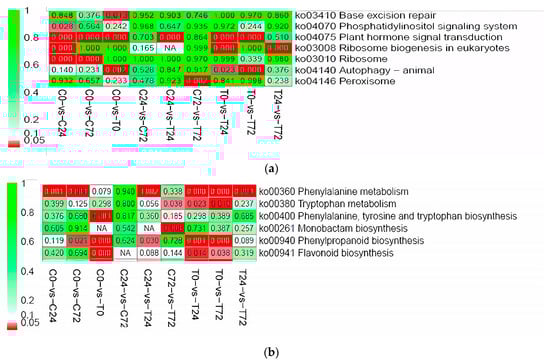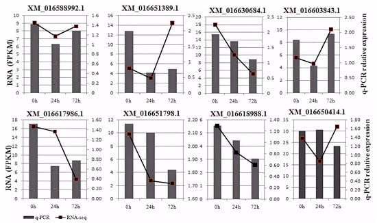 - Trapnell, C.; Roberts, A.; Goff, L.; Pertea, G.; Kim, D.; Kelley, D.R.; Pimentel, H.; Salzberg, S.L.; Rinn, J.L.; Pachter, L. Differential gene and transcript expression analysis of RNA-Seq experiments with TopHat and Cufflinks. Nat. Protoc. 2012, 7, 562–578. [Google Scholar] [CrossRef]
