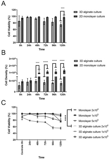 3.2. Three-Dimensional Alginate Scaffold Cell Culture