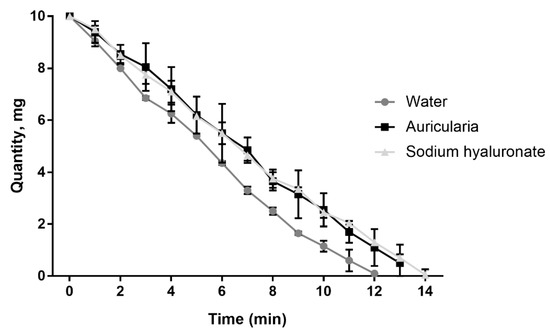 In some tests, the high molecular weight sodium hyaluronate was used as a reference, as its MW, which is more than 1 MDa, is comparable with polysaccharides of Auricularia, [1] and it has a reputation as an optimal moisture retention ingredient [56,57].