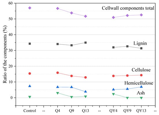 Figure 9. Chemical composition of bamboo green (% wt/wt, dry weight basis) during the round bamboo deterioration process.