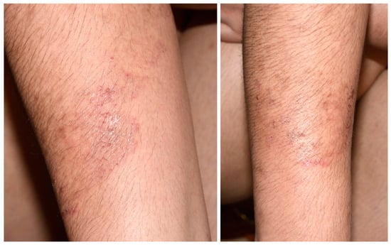 - Rengasamy, M.; Shenoy, M.M.; Dogra, S.; Asokan, N.; Khurana, A.; Poojary, S.; Jayaraman, J.; Valia, A.R.; Sardana, K.; Kolalapudi, S.; et al. Indian Association of Dermatologists, Venereologists and Leprologists (IADVL) Task Force against Recalcitrant Tinea (ITART) Consensus on the Management of Glabrous Tinea (INTACT). Indian Dermatol. Online J. 2020, 11, 502–519. [Google Scholar] [CrossRef] [PubMed]