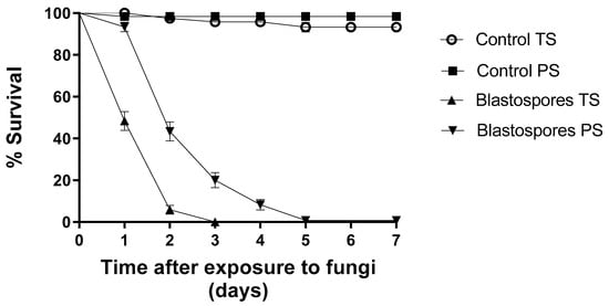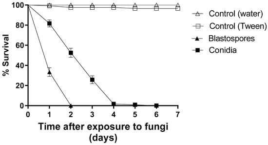 3.1. Comparison of Blastospore and Conidial Virulence under Laboratory Conditions