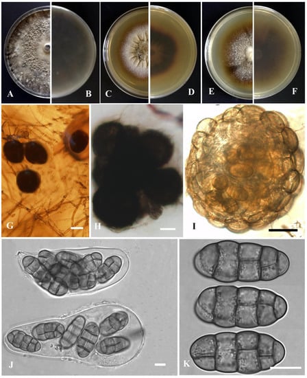 - Dayarathne, M.; Maharachchikumbura, S.; Hyde, K.; Devadatha, B.; Jones, G.; Chomnunti, P.; Khongphinitbunjong, K. Morpho-molecular characterization of microfungi associated with marine based habitats. Mycosphere 2020, 11, 1–188. [Google Scholar] [CrossRef]