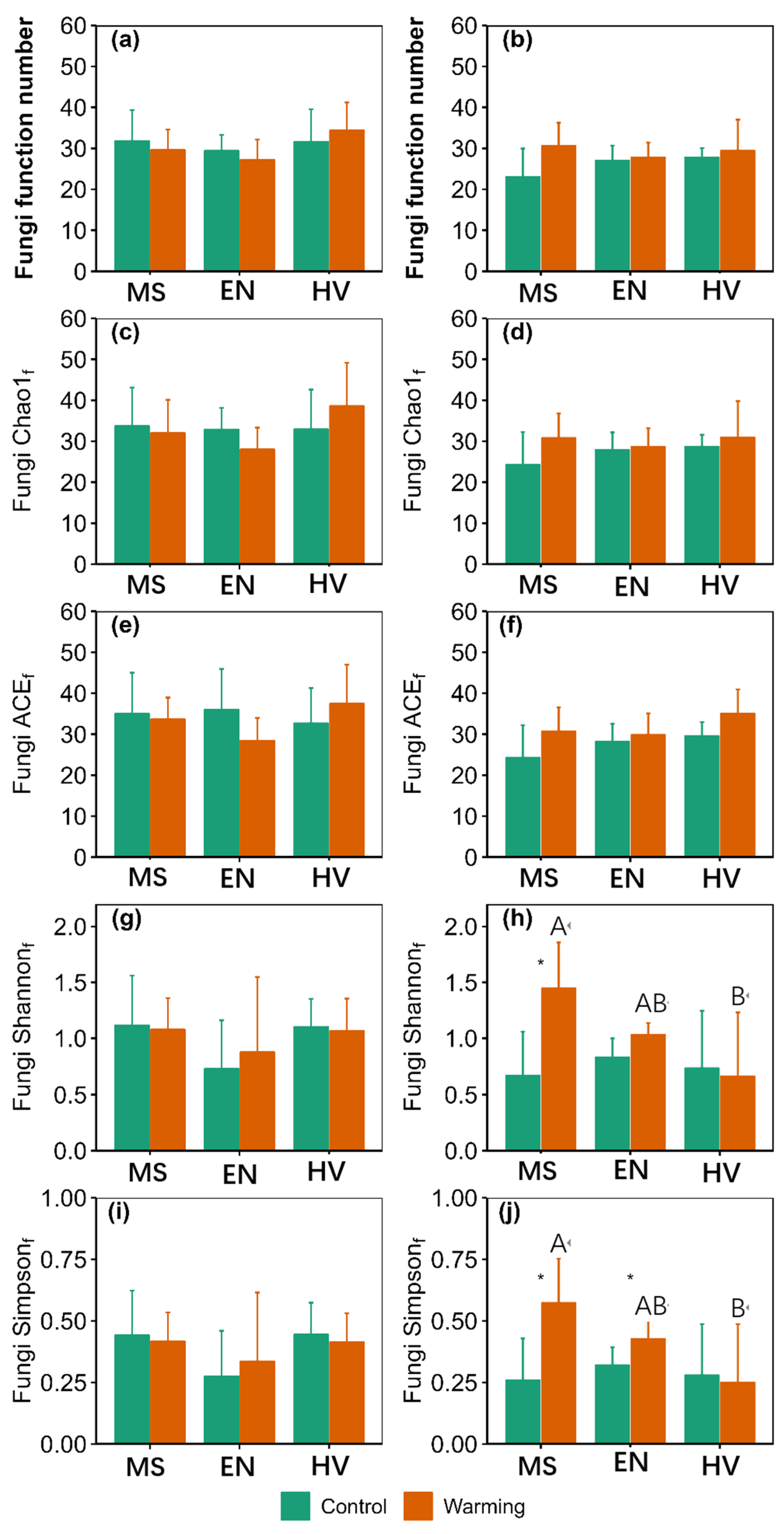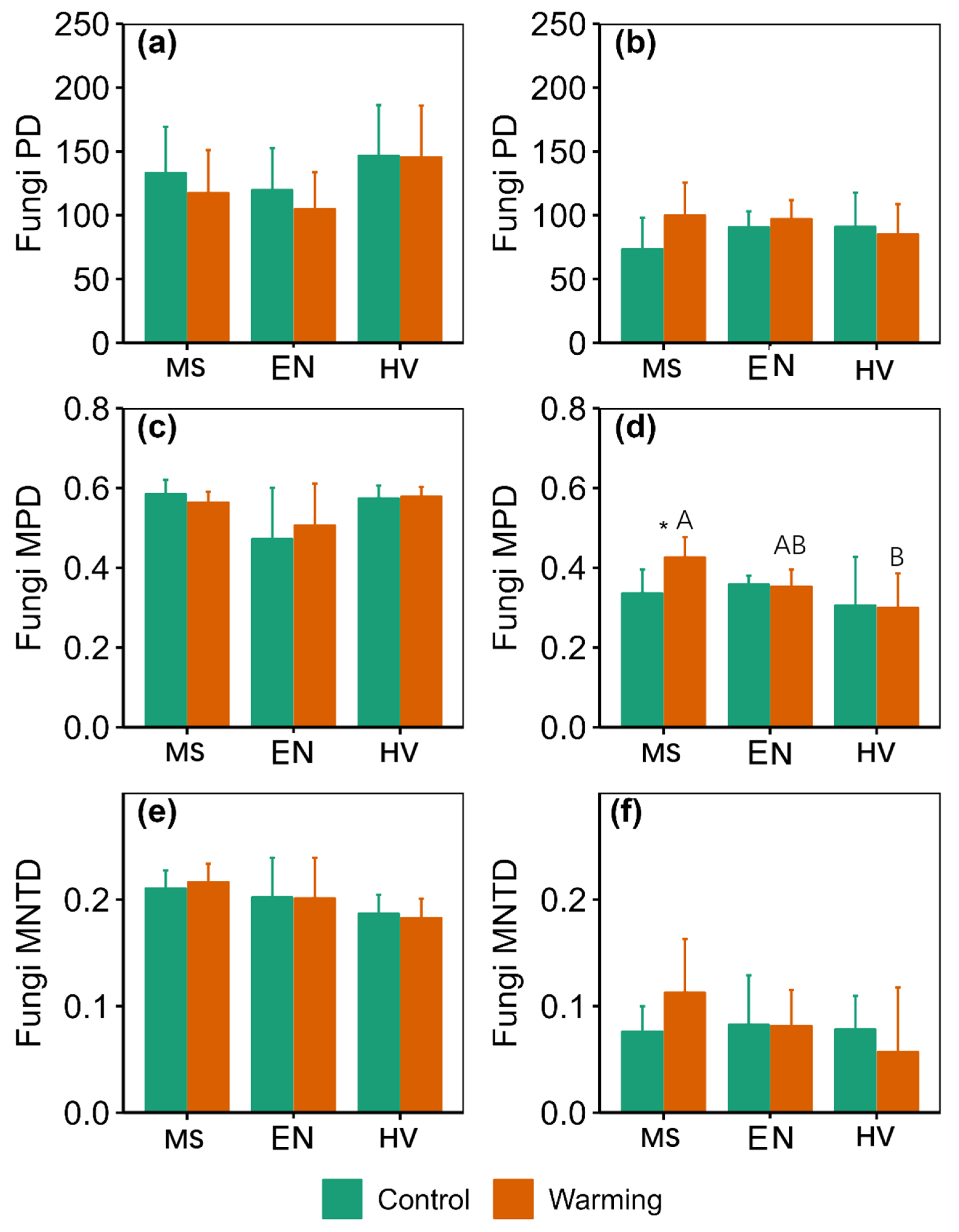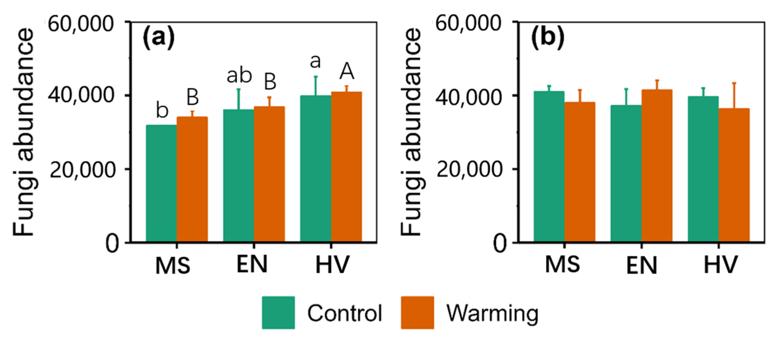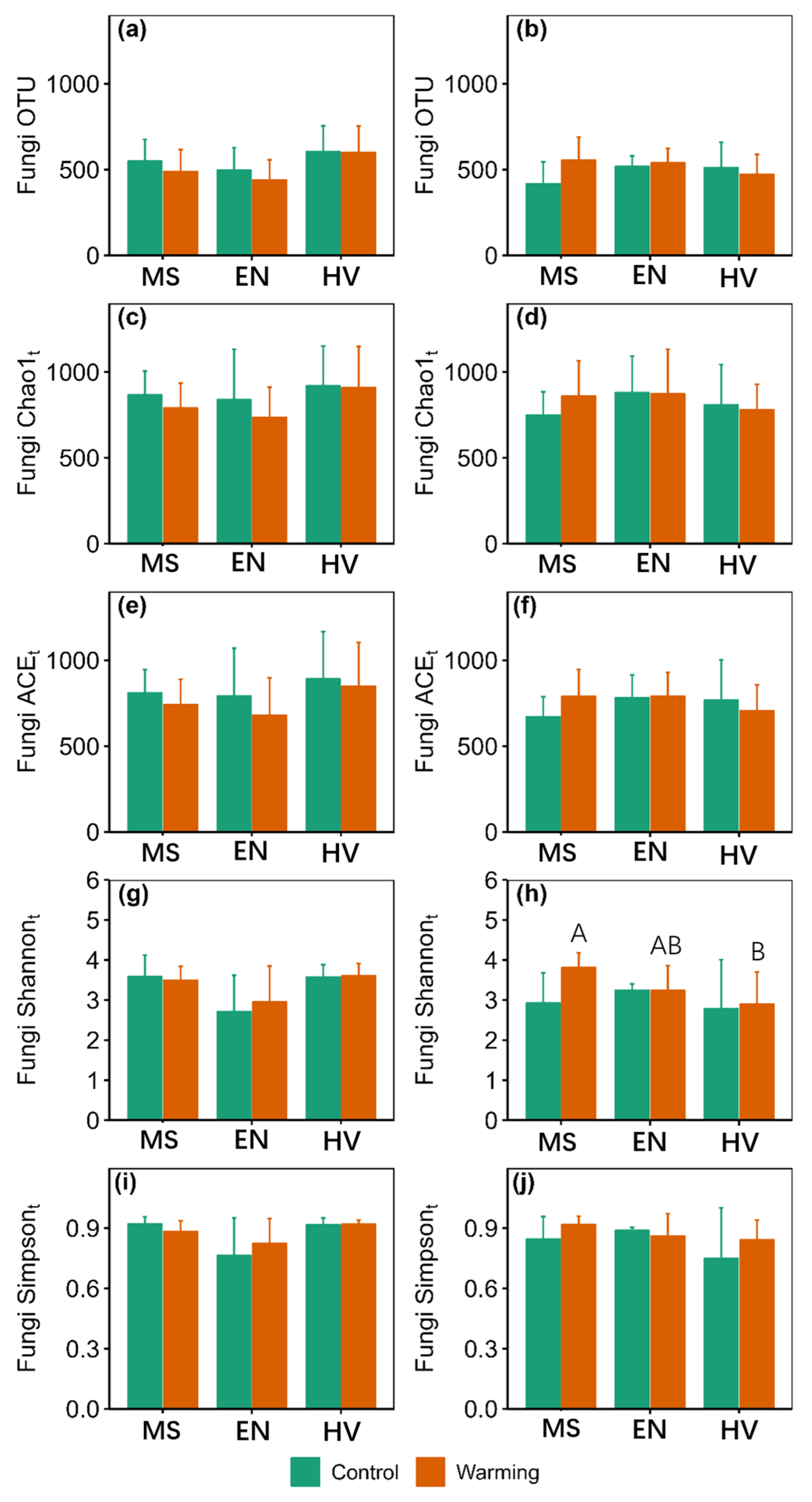 - Zhong, Z.; Fu, G. Response of soil fungal species, phylogenetic and functional diversity to diurnal asymmetric warming in an alpine agricultural ecosystem. Agric. Ecosyst. Environ. 2022, 335, 107993. [Google Scholar] [CrossRef]