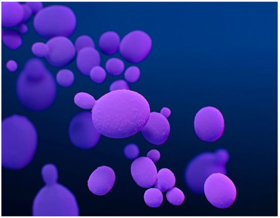 Morphology of cells of the microbial organism C. auris (Stephanie Rossow/Centers for Disease Control and Prevention—https://phil.cdc.gov/Details.aspx?pid=23239, accessed on 13 February 2023).