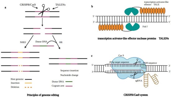 - Christian, M.; Cermak, T.; Doyle, E.L.; Schmidt, C.; Zhang, F.; Hummel, A.; Bogdanove, A.J.; Voytas, D.F. Targeting DNA double-strand breaks with TAL effector nucleases. Genetics 2010, 186, 757–761. [Google Scholar] [CrossRef]