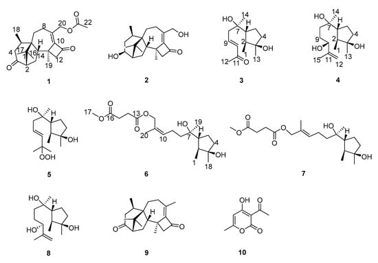Chemical structures of compounds 1–10.