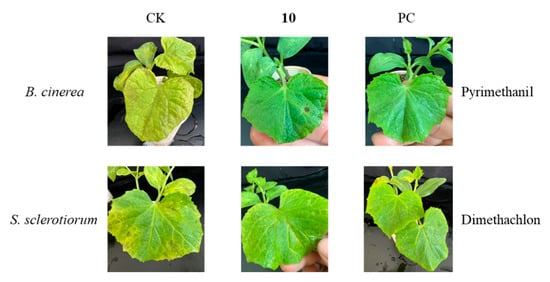 Activities of compound 10 against Botrytis cinerea and Sclerotinia sclerotiorum in vivo.
