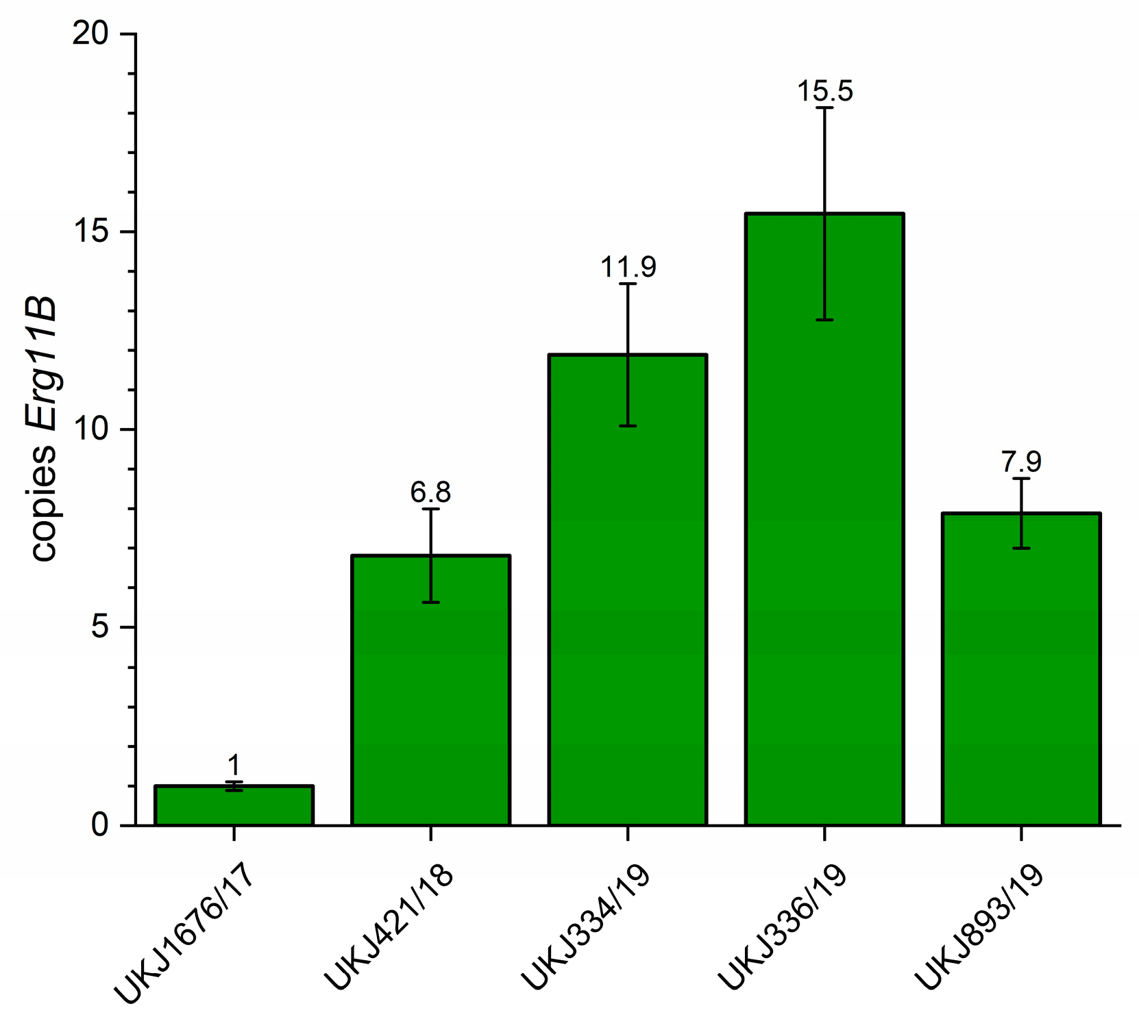 | UKJ Number | Collection Synonyms | Erg1 Amino Acid Exchanges | Erg11B Amino Acid Exchanges | Erg11B Amplification Type | Source, Cited |