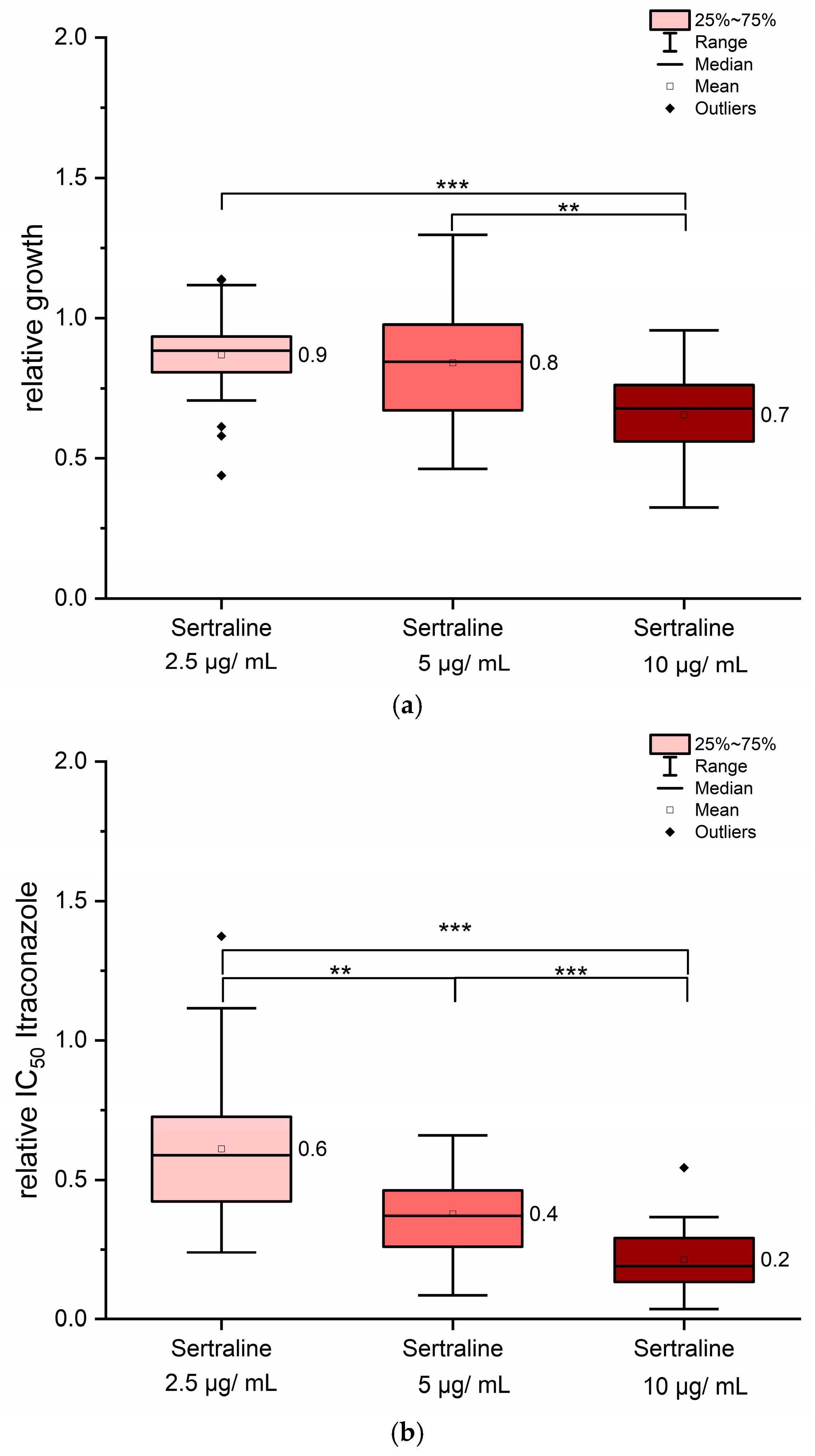 3.4. Sertraline Showed Antifungal Properties and Synergistic Effects in Combination with Itraconazole