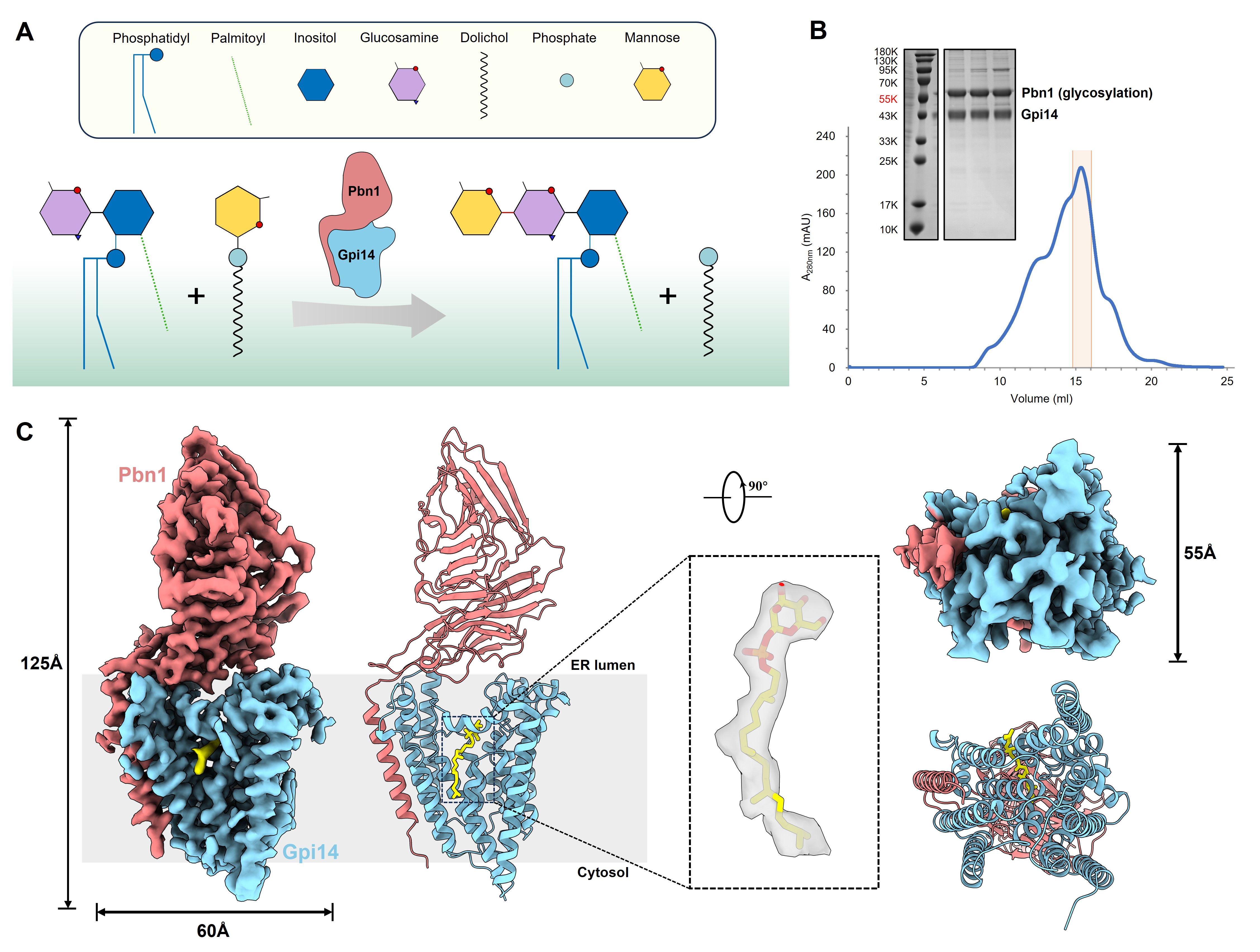 Sun, H.; Wu, W.; Li, X.; Deng, Y.; Huang, J.; Yin, M.; Yan, Z. Structural Insights into the Glycosylphosphatidylinositol Mannosyltransferase I Complex from Candida glabrata. J. Fungi 2025, 11, 819. https://doi.org/10.3390/jof11110819
