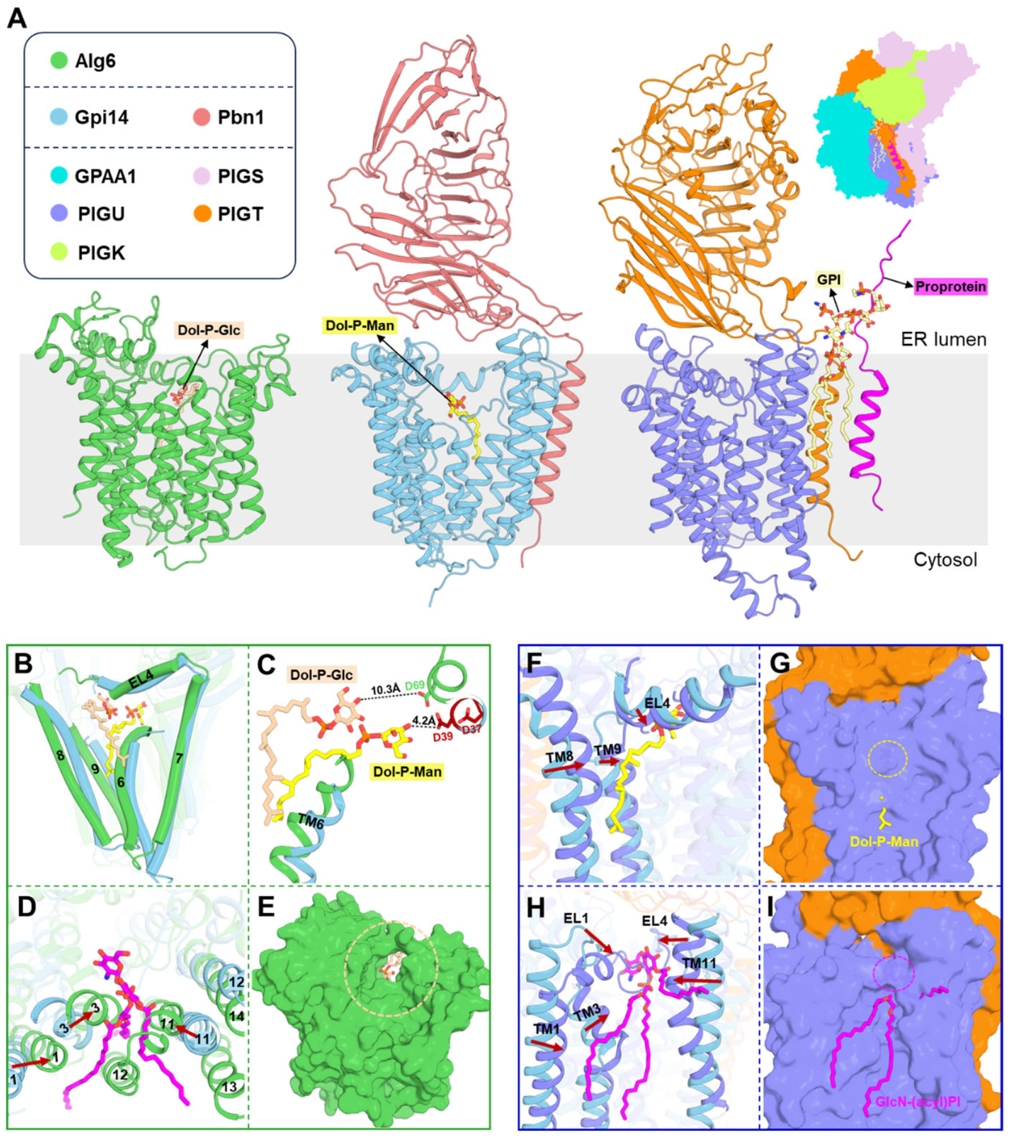- Xu, Y.; Li, T.; Zhou, Z.; Hong, J.; Chao, Y.; Zhu, Z.; Zhang, Y.; Qu, Q.; Li, D. Structures of liganded glycosylphosphatidylinositol transamidase illuminate GPI-AP biogenesis. Nat. Commun. 2023, 14, 5520. [Google Scholar] [CrossRef]