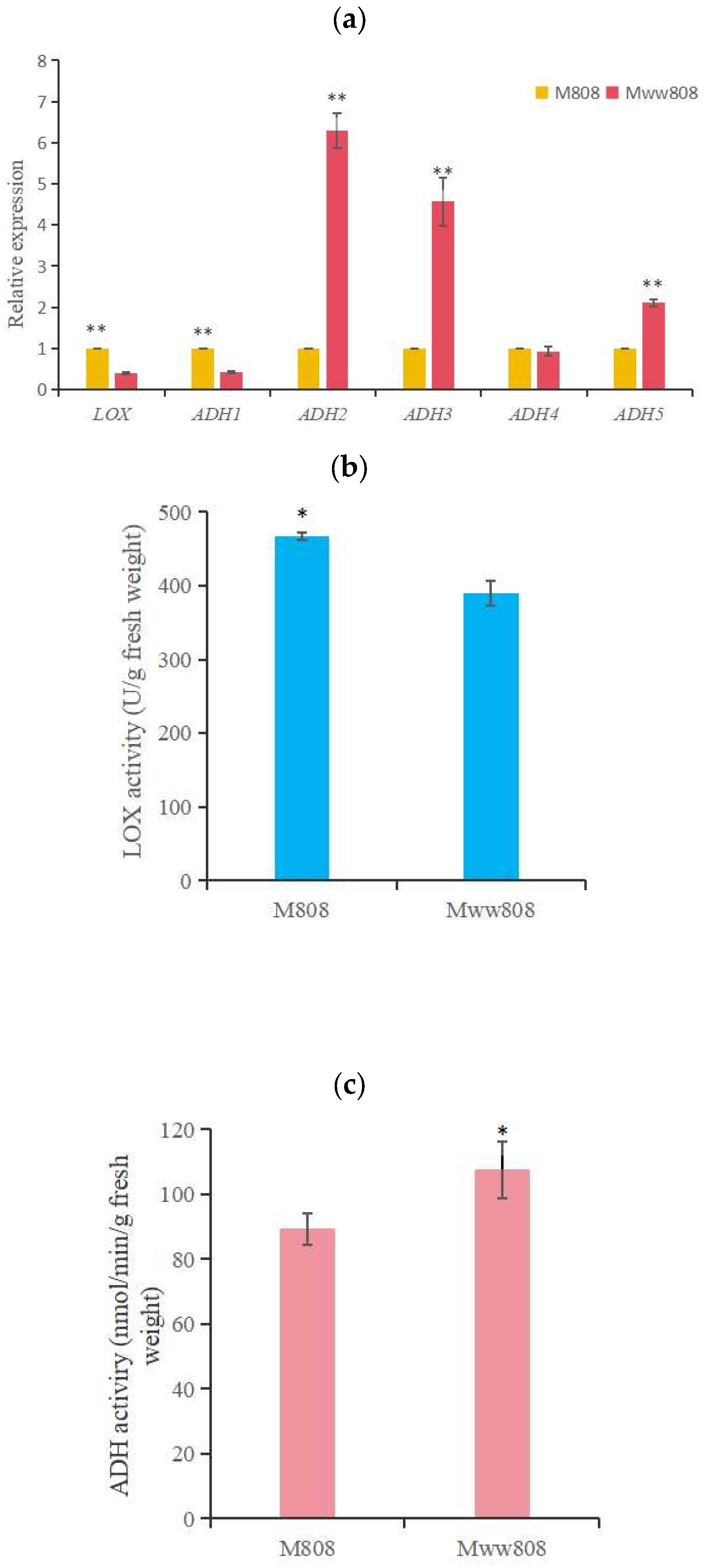 3.4. Analysis of Gene Expression and Key Enzyme Activities Related to the LOX Pathway