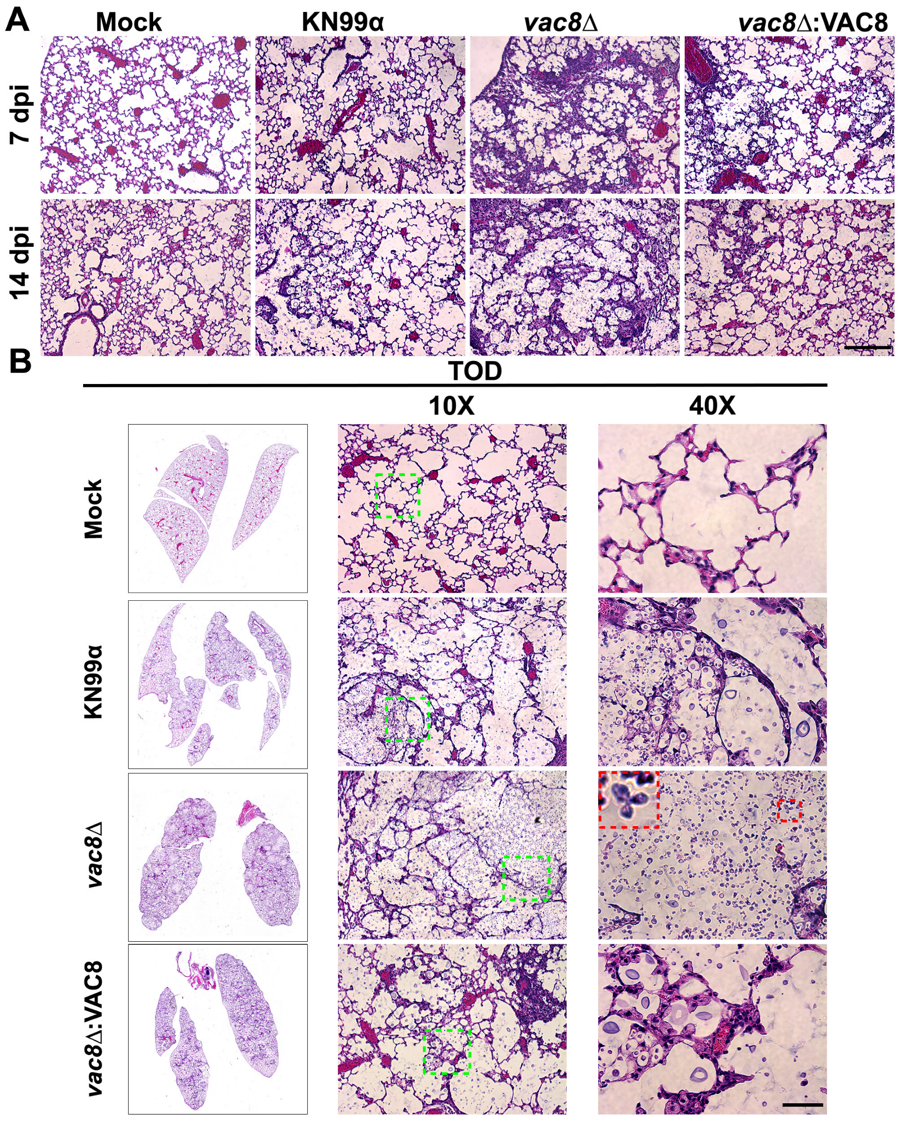 3.9. Infection with vac8Δ Alters the Lung Environment Despite Not Impacting Disease Progression