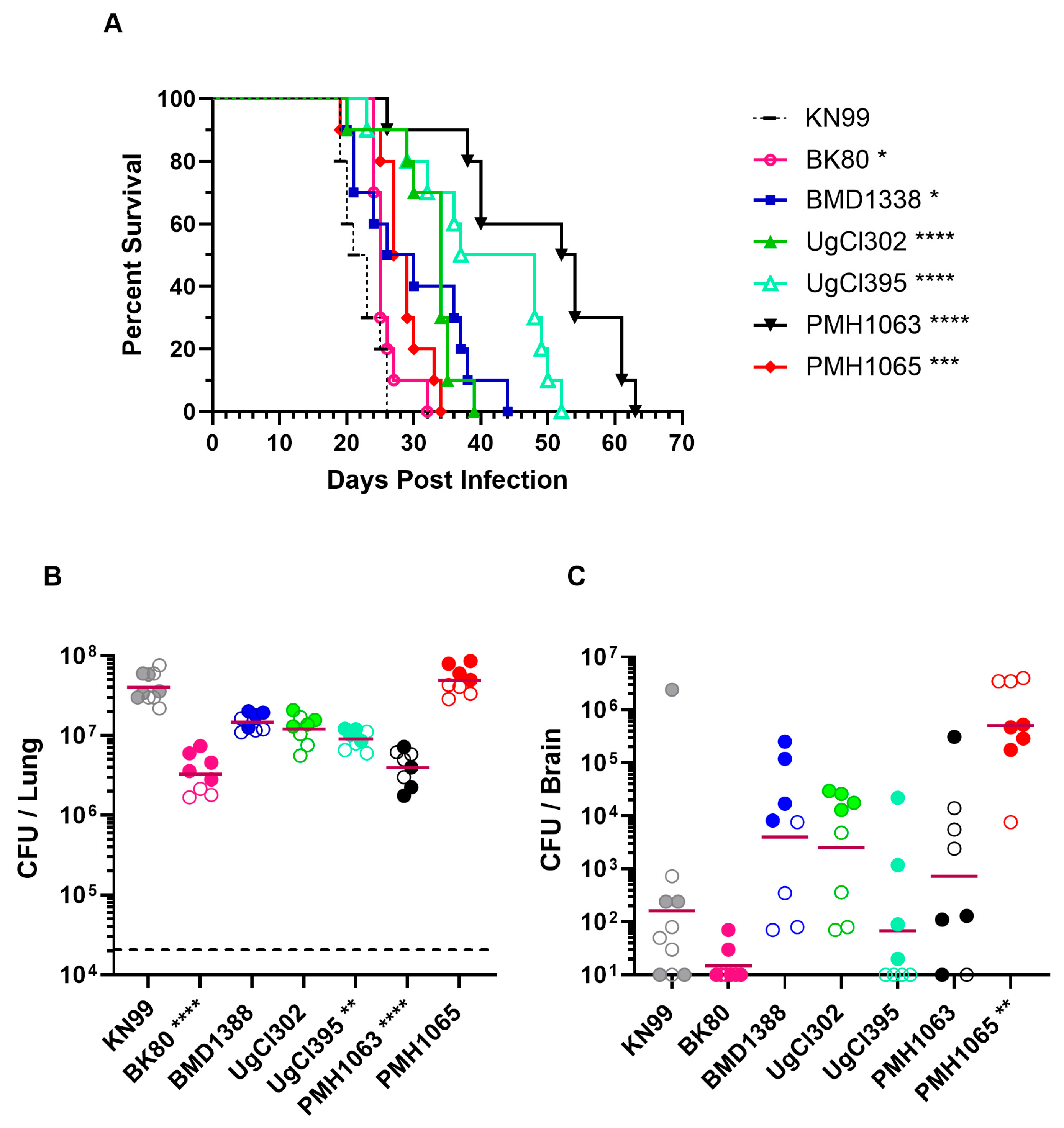 - Jackson, K.M.; Kono, T.J.Y.; Betancourt, J.J.; Wang, Y.; Kabbale, K.D.; Ding, M.; Kezh, P.; Ha, G.; Yoder, J.M.; Fulton, S.R.; et al. Single nucleotide polymorphisms are associated with strain-specific virulence differences among clinical isolates of Cryptococcus neoformans. Nat. Commun. 2024, 15, 10491. [Google Scholar] [CrossRef]