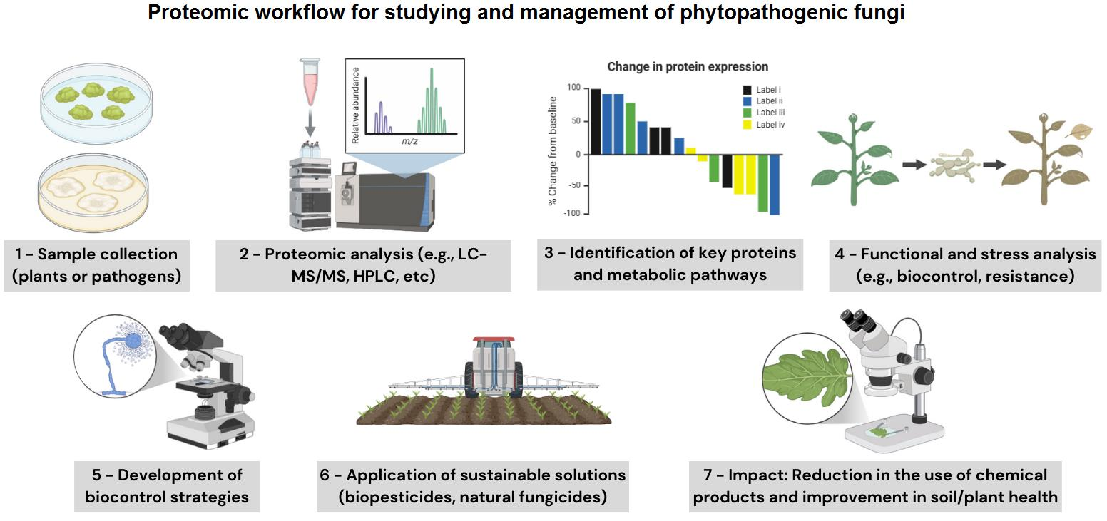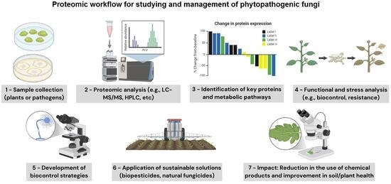 32]. Similarly, proteomic analyses of phytopathogenic fungi have elucidated key resistance mechanisms and potential targets for biocontrol strategies. For instance, the proteomic response of