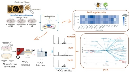 Iorizzo, M.; Coppola, F.; Pannella, G.; Ganassi, S.; Matarazzo, C.; Albanese, G.; Tedino, C.; Di Donato, L.M.; Iacovino, V.P.; Cozzolino, R.; et al. First Report on Antifungal Activity of Metschnikowia pulcherrima Against Ascosphaera apis, the Causative Agent of Chalkbrood Disease in Honeybee (Apis mellifera L.) Colonies. J. Fungi 2025, 11, 336. https://doi.org/10.3390/jof11050336