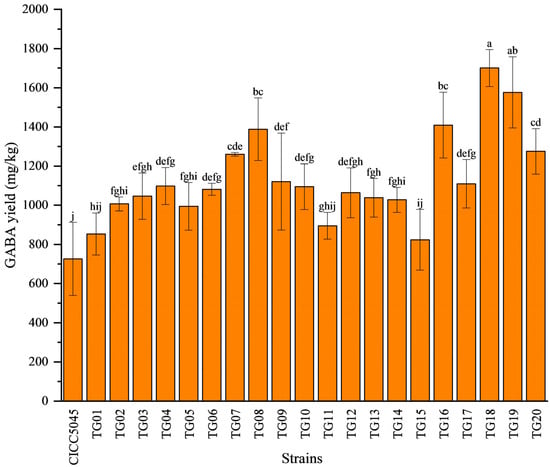 GABA content (mg/kg) was calculated using the formula: GABA determination concentration in the sample (mg/L) × sample volume (mL)/mass of the sample (g).