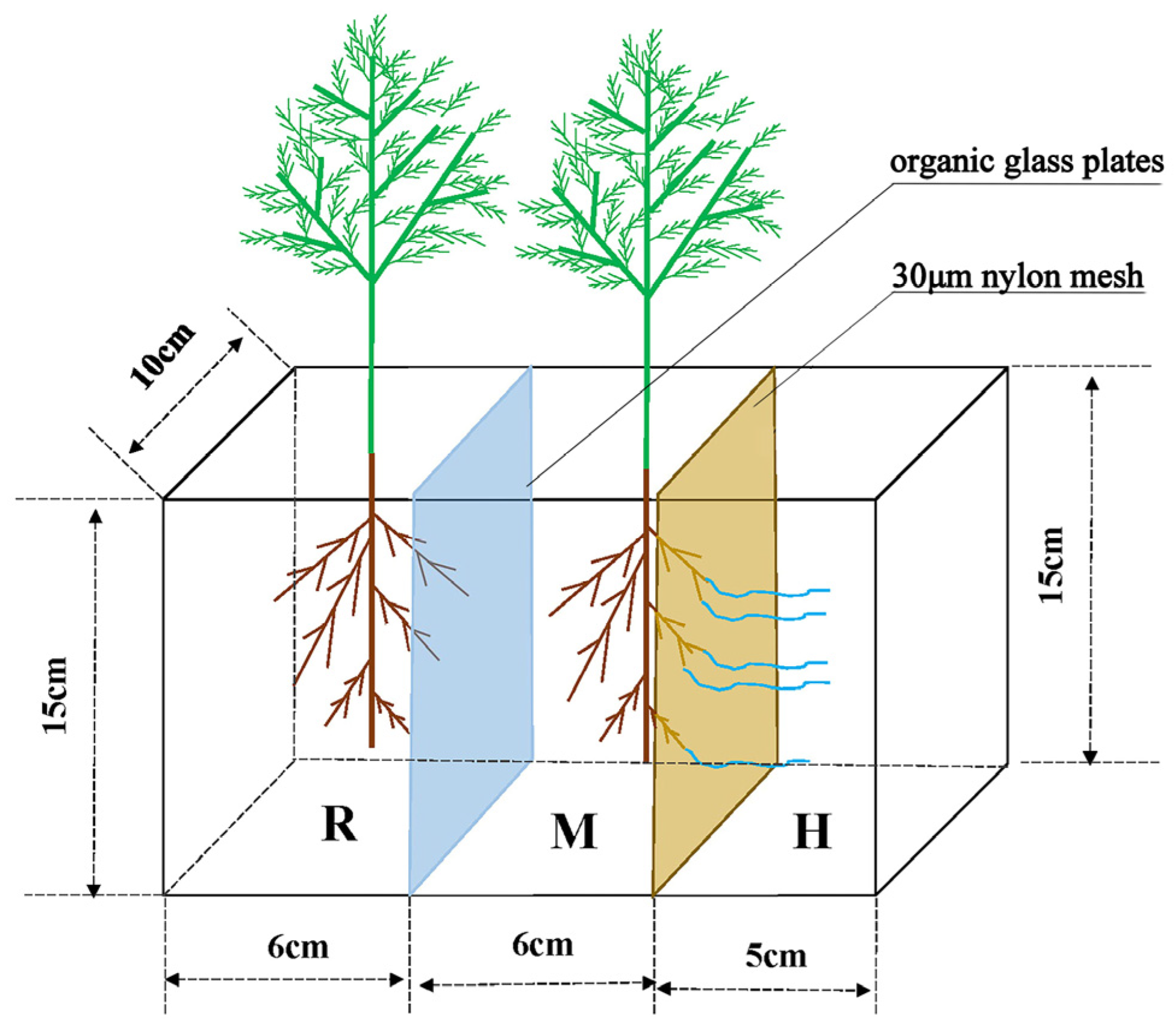 - Xie, L.; Palmroth, S.; Yin, C.; Oren, R. Extramatrical mycelial biomass is mediated by fine root mass and ectomycorrhizal fungal community composition across tree species. Sci. Total Environ. 2024, 950, 175175. [Google Scholar] [CrossRef] [PubMed]