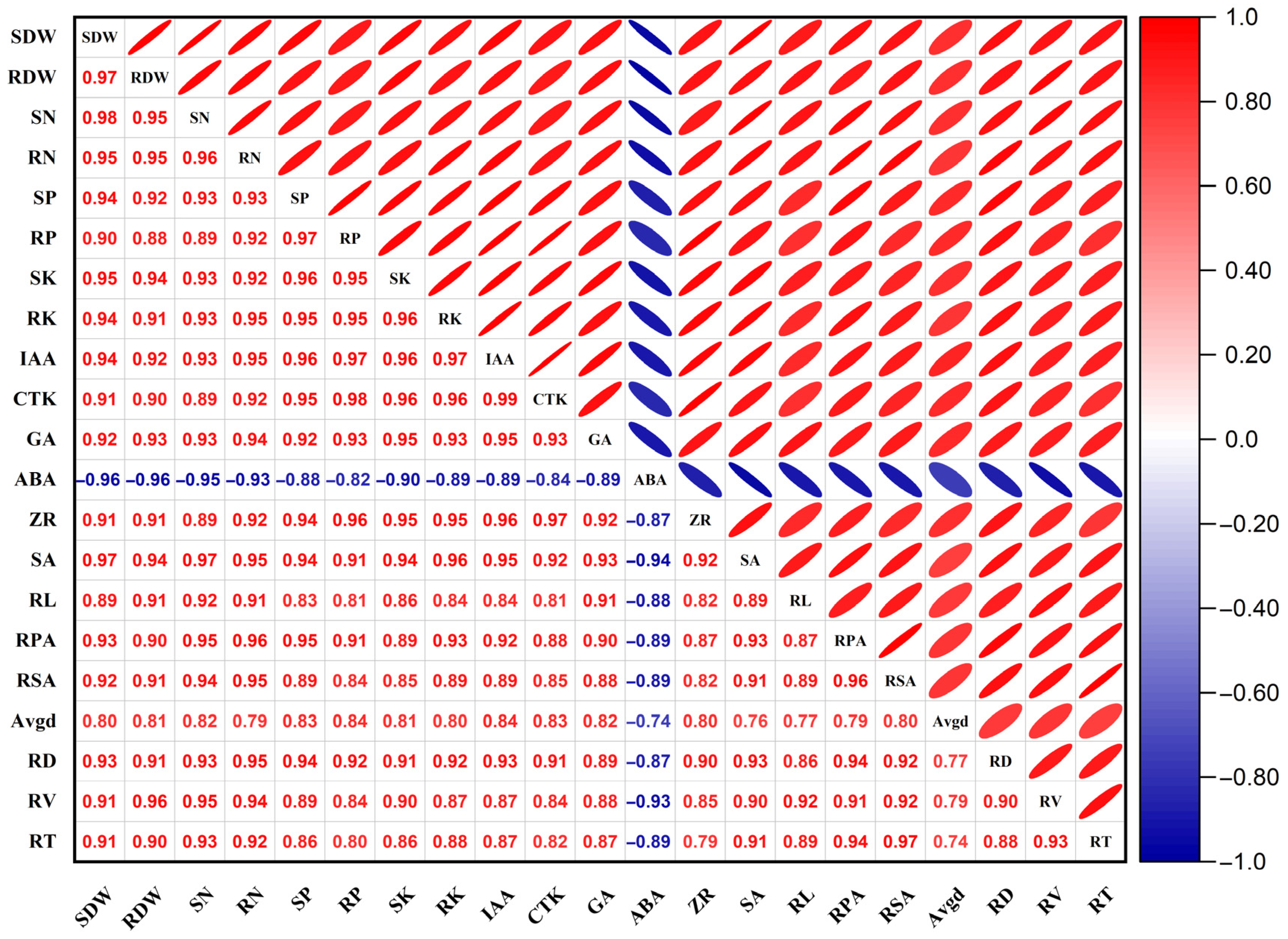 | Root physiological substances | IAA | 0.987 | 0.983 | 0.968 | 0.989 |