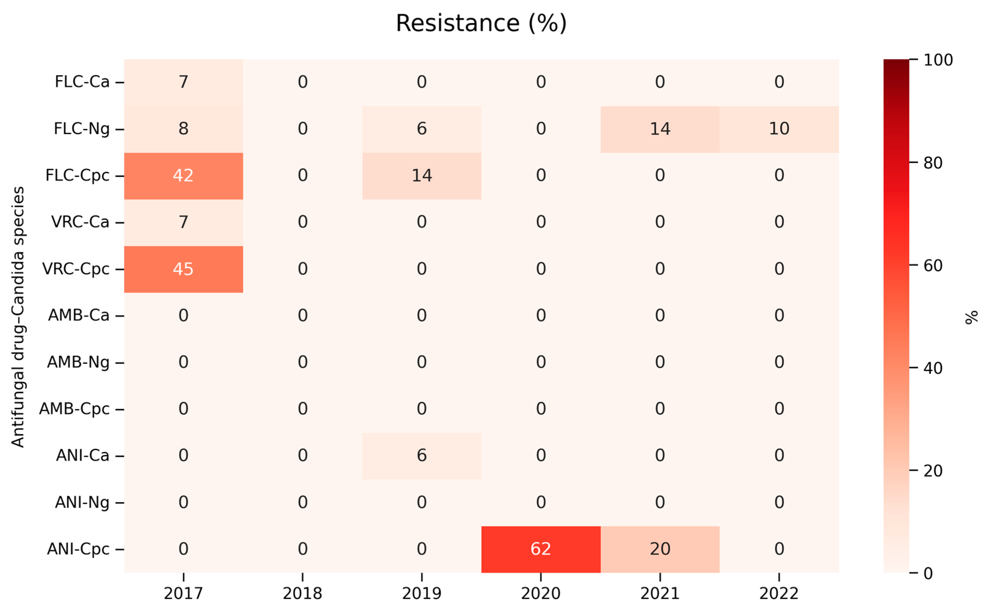3.4. Temporal Trends in Antifungal Susceptibility Profiles