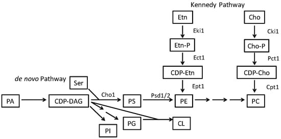 - Gibellini, F.; Smith, T.K. The kennedy pathway—de novo synthesis of phosphatidylethanolamine and phosphatidylcholine. IUBMB Life 2010, 62, 414–428. [Google Scholar] [CrossRef] [PubMed]
