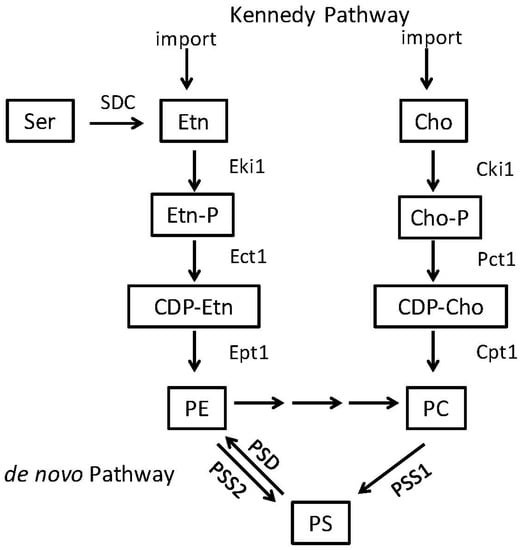 - Deng, L.; Fukuda, R.; Kakihara, T.; Narita, K.; Ohta, A. Incorporation and remodeling of phosphatidylethanolamine containing short acyl residues in yeast. Biochim. Biophys. Acta 2010, 1801, 635–645. [Google Scholar] [CrossRef] [PubMed]