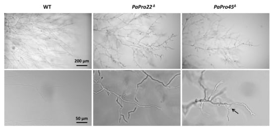 3.4. Expression of Selected Genes in the PaPro1Δ Mutant