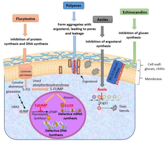 2. Available Antifungals against Candida spp. and Their Modes of Action