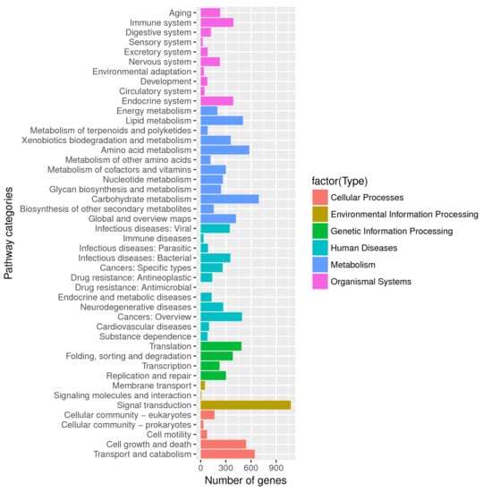 - Ogata, H.; Goto, S.; Sato, K.; Fujibuchi, W.; Bono, H.; Kanehisa, M. KEGG: Kyoto Encyclopedia of Genes and Genomes. Nucleic Acids Res. 1999, 27, 29–34. [Google Scholar] [CrossRef] [Green Version]