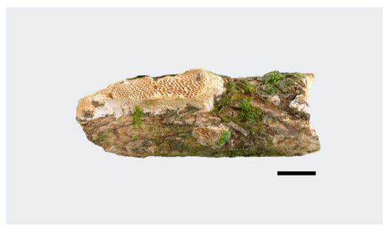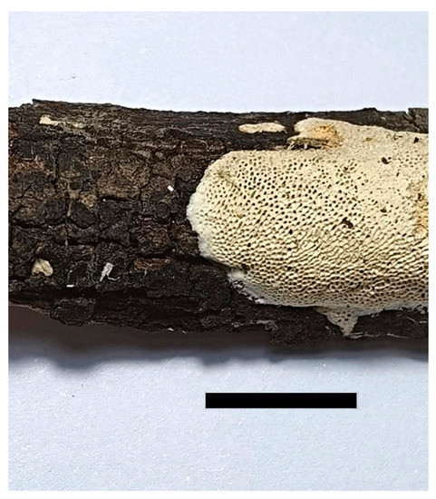 Basidiocarp of Haploporus punctatus (Holotype). Scale bar = 1.0 cm.