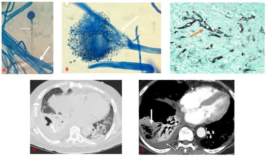 - Roden, M.M.; Zaoutis, T.E.; Buchanan, W.L.; Knudsen, T.A.; Sarkisova, T.A.; Schaufele, R.L.; Sein, M.; Sein, T.; Chiou, C.C.; Chu, J.H.; et al. Epidemiology and Outcome of Zygomycosis: A Review of 929 Reported Cases. Clin. Infect. Dis. 2005, 41, 634–653. [Google Scholar] [CrossRef] [PubMed]