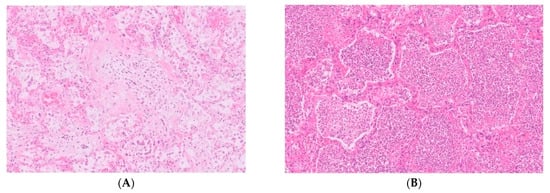 In addition, sampling from abscesses showed collections of neutrophils and necrotic tissue inside the cavities, and hemorrhagic infarction of the surrounding lung parenchyma (Figure 2B). No Aspergillus hyphae could be detected in PAS-diastase and Grocott stains.