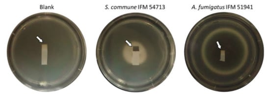 S. commune strains and Aspergillus strains used for this study are shown in Table S1. All strains were provided by the Medical Mycology Research Center, Chiba University. The strains were cultured routinely on potato dextrose agar (PDA; Becton, Dickinson and Co., Franklin Lakes, NJ, USA) slants with air-permeable silicone rubber plugs at 35 °C in an incubator. These strains were handled in a biosafety cabinet Class II type A2 (PHC Co., Tokyo, Japan). Dimethyl disulfide and dimethyl trisulfide were purchased from Fujifilm Wako Pure Chemical Co. (Osaka, Japan). Diethyl disulfide was purchased from Tokyo Chemical Industry Co., Ltd. (Tokyo, Japan).