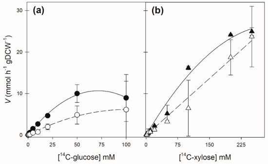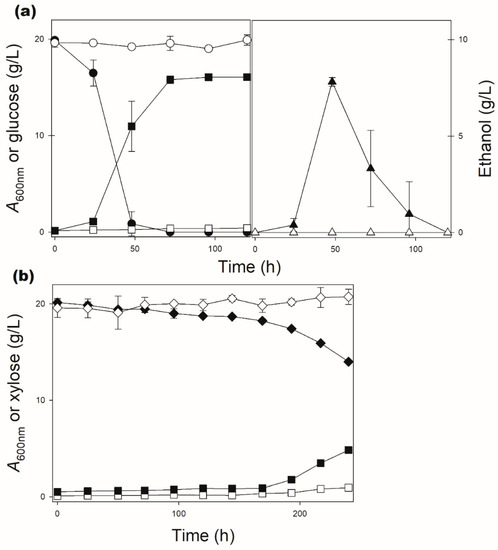- Hamacher, T.; Becker, J.; Gárdonyi, M.; Hahn-Hägerdal, B.; Boles, E. Characterization of the xylose-transporting properties of yeast hexose transporters and their influence on xylose utilization. Microbiology 2002, 148, 2783–2788. [Google Scholar] [CrossRef] [PubMed]