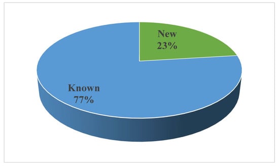 Distribution of the bioactive compounds between new compounds and known compounds.